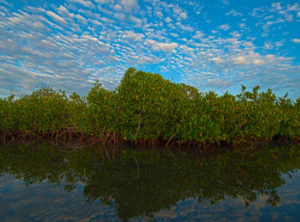 Among those essential habitats are mangrove swamps. The Sea of Cortez marks the northernmost extent of mangroves on the Pacific side of the Americas. Mangroves thrive in shallow tidal lagoons, their stilt-like roots often permanently submerged. As a result of evaporation, tidal shallows can have higher salt concentrations than the sea itself. To survive in this arboricidal environment, mangroves have evolved some unique adaptations: their leaves exude excess salt crystals, and some species have snorkel roots, which grow up through the mud to obtain oxygen. At least a third of all the fish and shellfish caught by small-scale fishermen here spend part of their life cycle in the sheltering, rooty embrace of mangrove swamps. The trees also reduce coastal erosion and storm damage, although that fact seems to have been lost on the developers, cattle ranchers, and shrimp farmers who are cutting them down. (Farmed shrimp are typically raised in large rectangular pens, with networks of dikes. Mangroves are destroyed to make room for the pens and dikes, and to make the pens accessible.) Since the 1970s, parts of the Sea of Cortez have lost more than a quarter of their mangrove forests, and nationwide the rate of destruction has accelerated, with some 2 percent of the remaining mangroves across Mexico now being cleared each year.